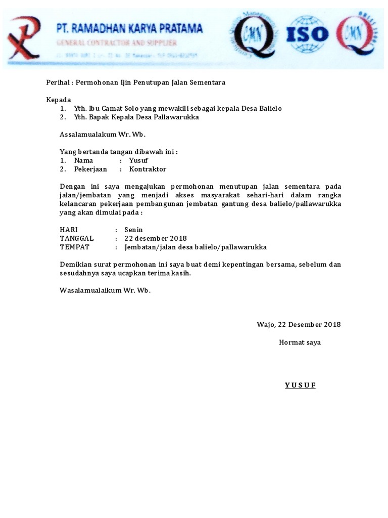 Contoh Surat Pemberitahuan Penutupan Jalan Otosection